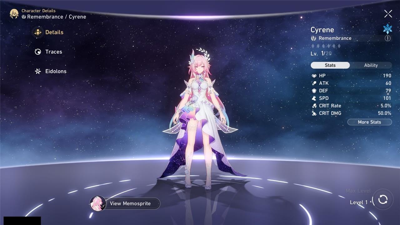 Cyrene also has three bonus abilities, namely, Causality in Trichotomy, Child of Remembrance, and Ripples Across Time. Causality in Trichotomy increases the damage dealt by allies by 20% if Cyrene has 180 SPD or above.