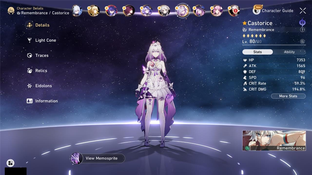 Pair Cyrene with Castorice (main DPS), Evernight (sub-DPS), and Hyacine (sustain) for full Remembrance synergy. Cyrene grants Castorice enhanced Newbud collection for Netherwing DPS spikes (+0.48% DMG multiplier), boosts Evernight’s CRIT DMG, and supports Hyacine’s healing while hitting 100% synergy for 0-cycle MoC clears.