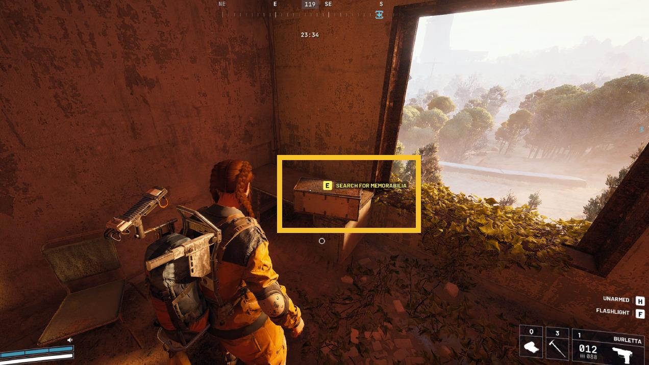 You should spot a small desk with a yellow prompt to ‘Search for memorabilia’ on a rectangular container, the quest’s titular Major’s footlocker. When searched, it will drop Major Aiva’s Mementos, so remember to pick them up and stow them in your Safe Pocket. Doing so will tick off the first objective for the Arc Raiders The Major’s Footlocker quest.