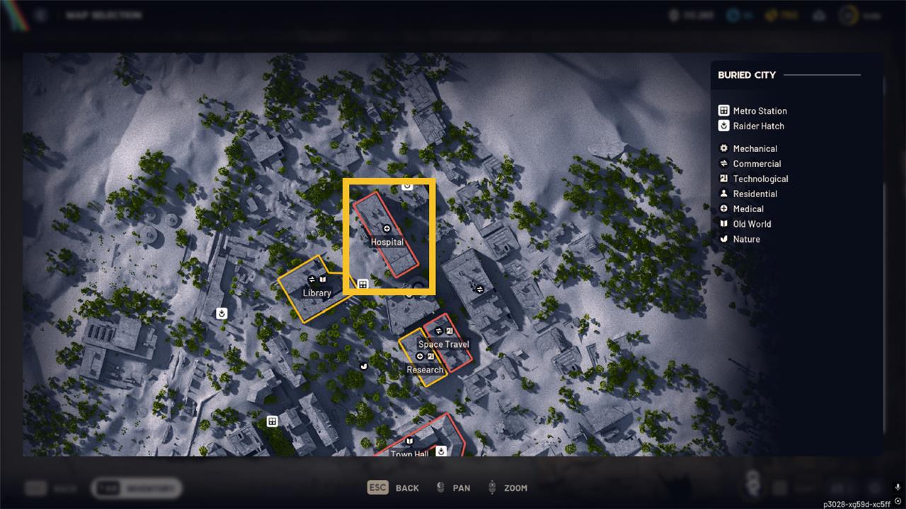 New District west-to-east route: start around Space Travel hub, cut through Research, then finish at Town Hall, looting every med bag and clinic room you pass. These three locations are dense interior spots with drawers, cabinets, and med bags that frequently spawn higher-tier medical loot.