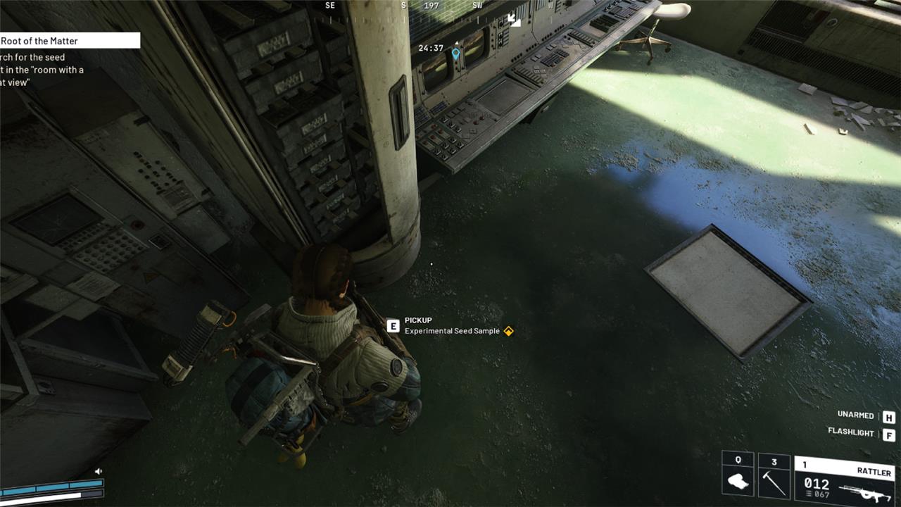 Inside that room, look along the walls for a cylindrical container labeled as the Seed Vault. Interact with it to “search” the vault and grab the Experimental Seed Sample.