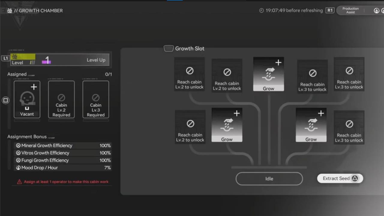 Balance vs. other cabins: Some late-game players leave the Growth Chamber empty in favor of pure production cabins, because chamber yields top out at a few mats per day; if you’re starved for boletes, keep it running, but once you’re stocked, consider reallocating operators.