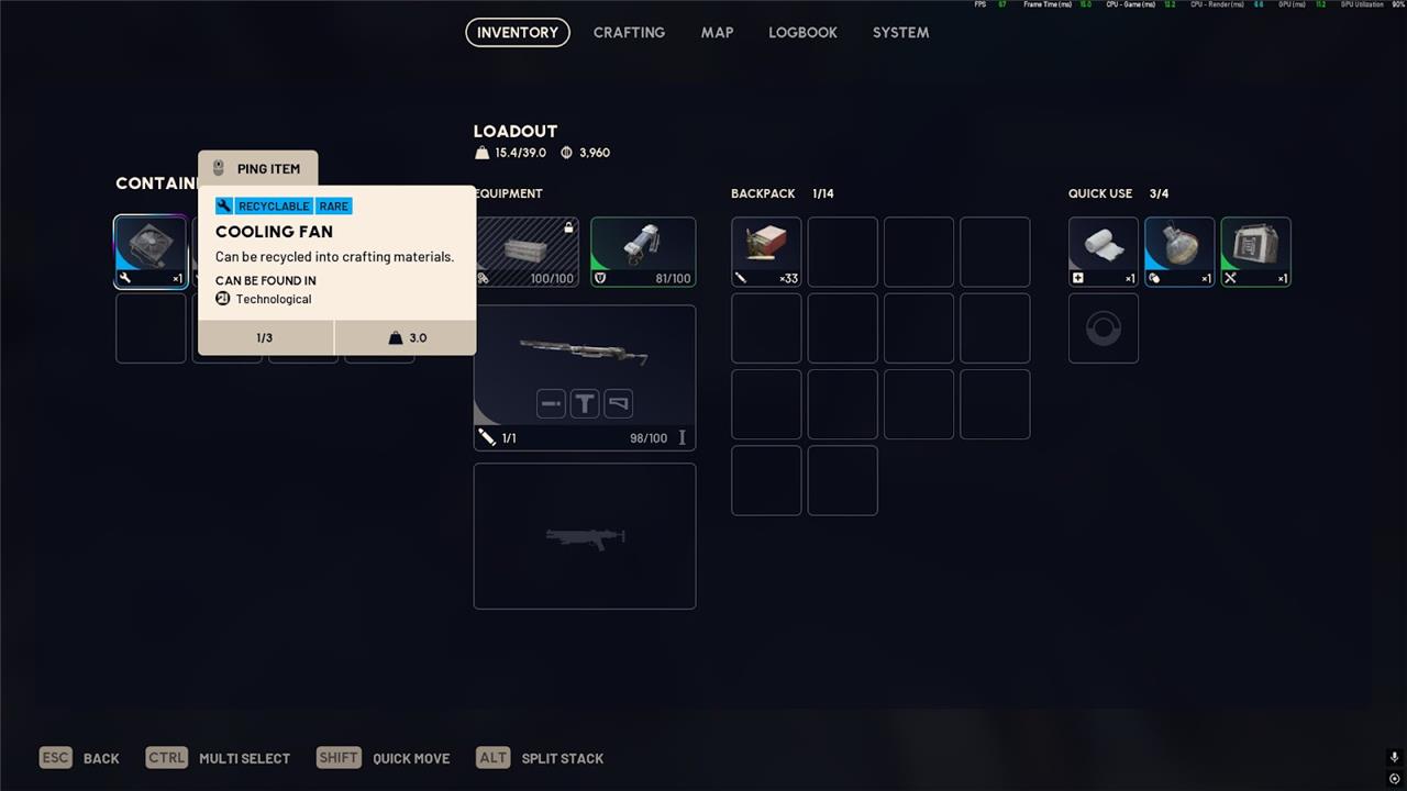 Backpack size: Use at least a medium backpack so you can scoop multiple electronics, a couple of weapons, and some crafting materials before extraction.ββ